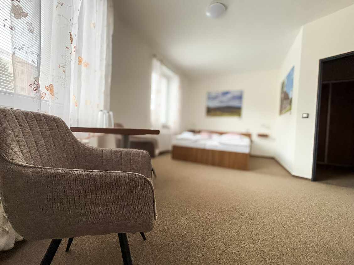 Příjemný a účelně zařízený pokoj, který je ideální volbou pro páry nebo obchodní cestující hledající pohodlí a klidné zázemí. Tento typ pokoje je navržen pro ty, kteří nevyžadují apartmánové vybavení, ale ocení kvalitní spánek a čisté prostředí.